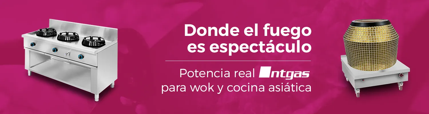 Las cocina wok NTGAS PAV/04-4C-WA y PAV/04-4V-WA combinan cuatro quemadores atmosféricos de alta potencia con una encimera con canal de agua, logrando máxima eficiencia, limpieza y control térmico en cocinas profesionales. Fabricadas en acero inoxidable AISI 304-SAT, son ideales para restaurantes asiáticos, buffets y cocinas de alta rotación que buscan fiabilidad, potencia y mantenimiento ágil en formato sobremesa.