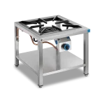 El diseño abierto en la parte superior permite una integración directa del quemador, facilitando su acceso para operaciones de limpieza y mantenimiento. La parrilla de fundición incluida asegura una estabilidad superior, especialmente útil al trabajar con marmitas, ollas o recipientes de gran capacidad. Además, incorpora un estante inferior que mejora la organización del espacio y permite tener a mano herramientas y elementos auxiliares esenciales en el flujo de trabajo.
